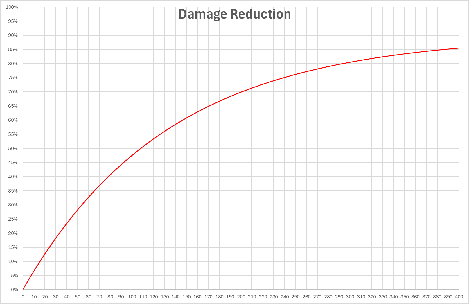 Incoming\_damage = attack\_damage \* (1 - damage\_reduction). For defense to reduction relation please take a look at the graph below.<br>