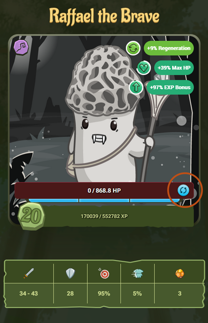 <table><thead><tr><th width="286.92350206521365">Costs</th><th width="212.59835547961302">Reward</th><th>Potential Risk</th></tr></thead><tbody><tr><td>Spores (level dependent)</td><td>Revived, Full HP</td><td>none</td></tr></tbody></table>